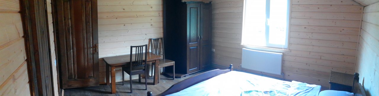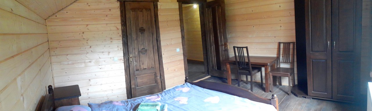 Двоспальне ліжко, шафа для одягу, столик, телевізор в залі, санвузол в номері.